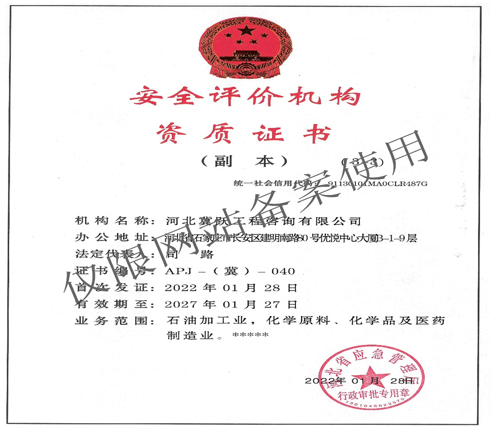河北冀躍工程咨詢有限公司,位于河北省石家莊市長安區,成立于2018年,注冊資金300萬元,是一家綜合性技術服務機構。公司于2019年12月在環境影響評價信用平臺完成注冊,誠信檔案良好, 2021年9月取得交通運輸企業安全生產標準化三級評價機構。2022年1月取得安全評價資質。業務領域包括:環境影響評價、環保驗收、排污許可、應急預案、安全評價、職業衛生評價、安全生產標準化、雙控機制建設及評估等。